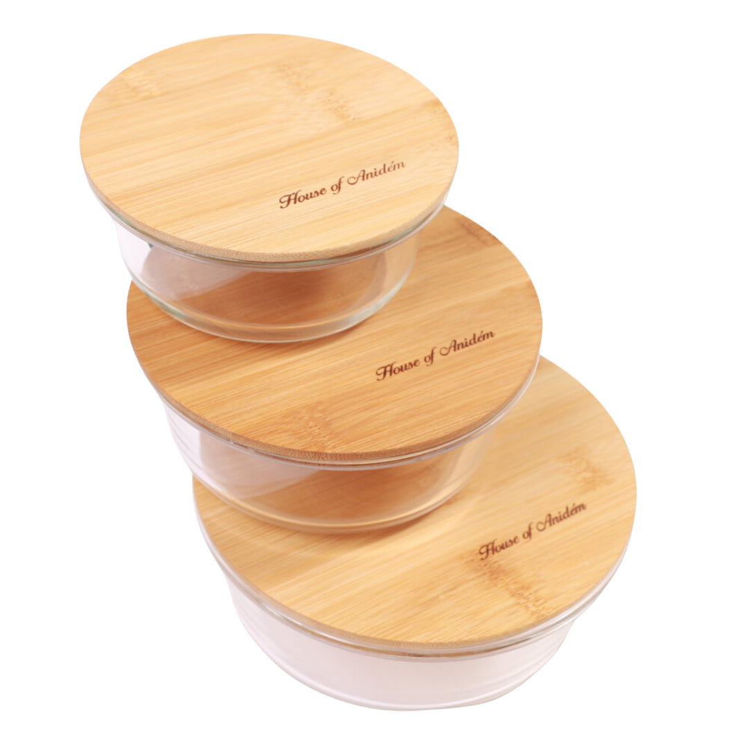 Upgrade your meal prep with our Bamboo Crystal Meal Prep Set, a sleek and modern food storage solution designed for convenience and sustainability. This premium round glass container, with a capacity of 0-1L, is perfect for keeping your meals fresh and organized.