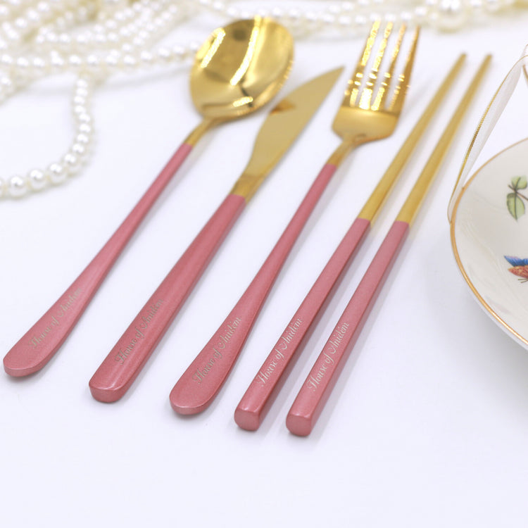The House of Anidém Silverware is made of stainless steel and features a beautiful pear design. The set includes an easy-grip dinner spoon, fork, knife, and chopsticks. The set also comes in an attractive gift box, which makes it an ideal wedding or holiday gift